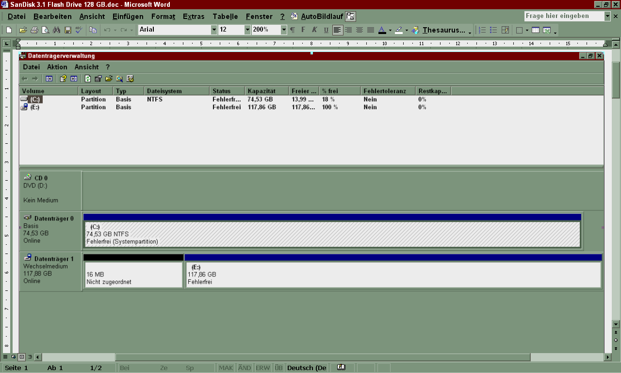 Mehr wird in der Datenträgerverwaltung nicht angeboten als dies